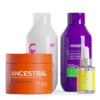Mascarilla Ancestral: Aplica con el cabello limpio y húmedo (20 min aprox.), de medios a puntas. Enjuaga.
