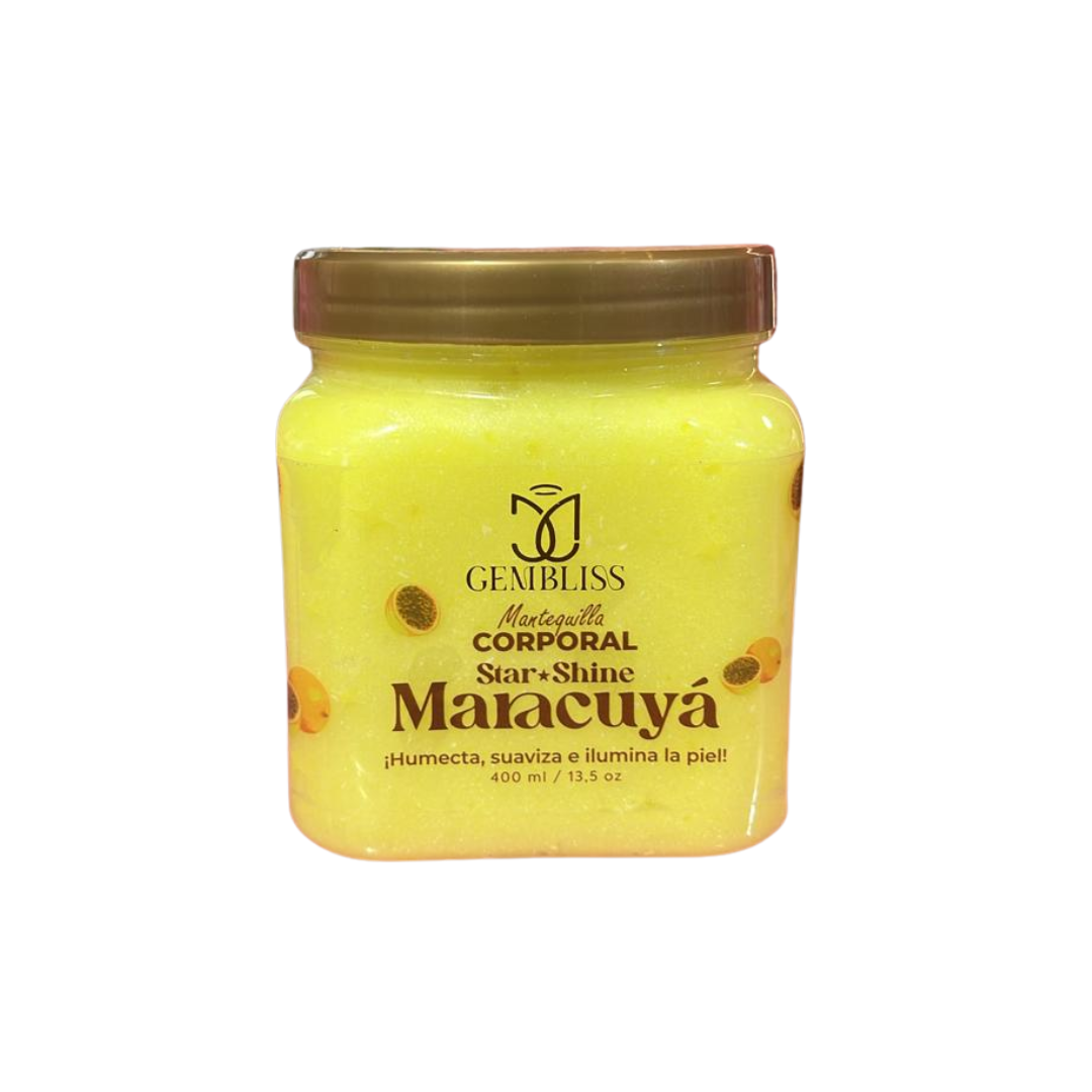 Es una mantequilla corporal hidratante de textura cremosa que nutre la piel en profundidad mientras deja un aroma frutal y fresco a maracuyá, ideal para una sensación revitalizante y piel suave.