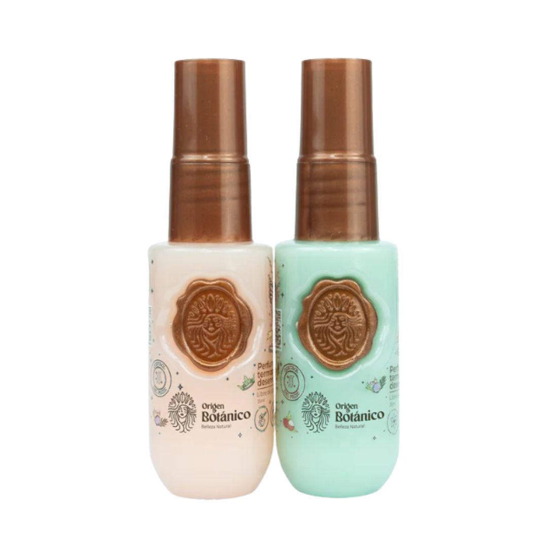 Mini dúo de perfumes capilares 3 en 1 con feromonas y sin alcohol. Controlan el friz, termoprotegen, desenredan y dejan aroma irresistible.