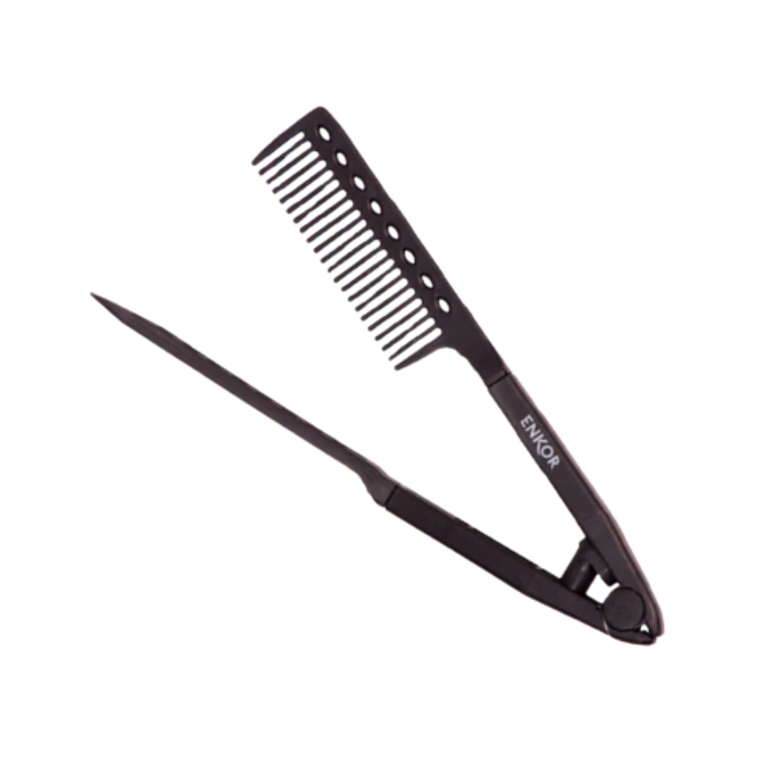 Es un peine profesional fabricado en material de carbono resistente al calor, diseñado para acompañar procesos de planchado y alisado, facilitando un acabado más liso y uniforme.