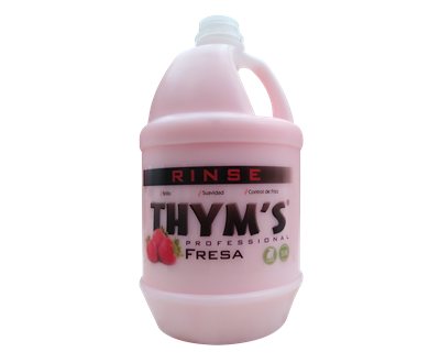 Rinse (acondicionador de enjuague) profesional con aroma o esencia de fresa, formulado para suavizar, desenredar y aportar brillo al cabello después del shampoo.