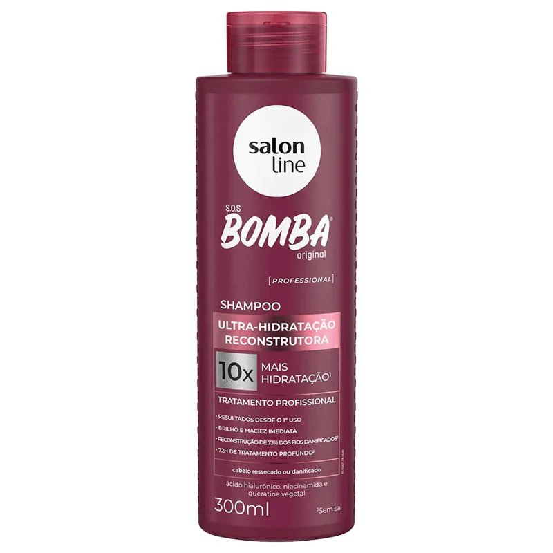 Shampoo Reconstructor Ultra Hidratación SOS Bomba garantiza 10 veces más hidratación, brillo, suavidad inmediata, además de reconstruir el 73% del cabello dañado y un tratamiento profundo hasta por 72 horas.